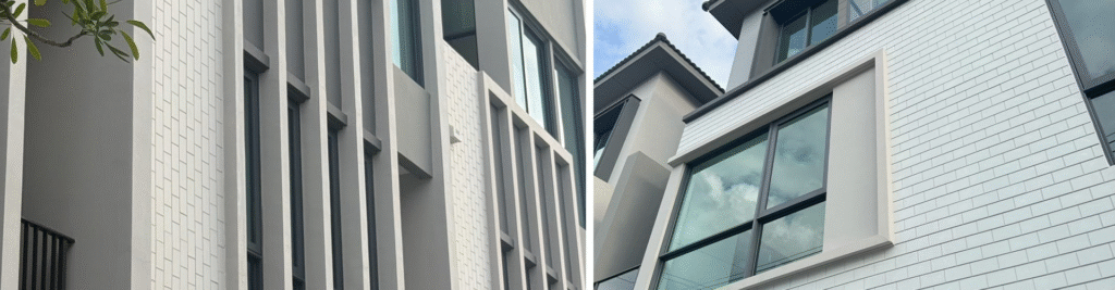 אריחי חיפוי מוארכים עם גמר בעל קצוות ישרים עם אפשרות להתקנה מרועפת אשר מקנה מראה חיפוי כפרי והגנה מלאה מחדירות מים.